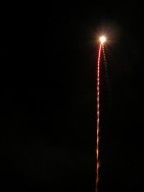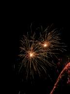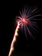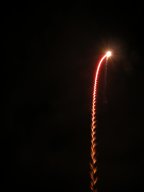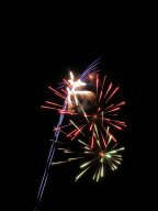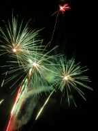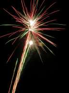 These photographs were taken at Firefest 2005 near South Bend, IN. This is the first time I've take pictures of fireworks with my digital camera, and I got a few reasonable shots. I didn't have problems with CCD noise on the long exposures or many overexposures by setting the sensitivity to ISO 100. I was limited by the types of shots that I could take; even though I had the camera on a tripod I still don't have the remote shutter release for my camera (it's nearly $100). Also, these pictures were taken from very close to the fireworks looking almost straight up at them, so it was difficult to get them all in the frame, even with wide-angle shots. Dust and ash settling on the lens caused persistent flare problems, but I'd anticipated that and brought along a can of air to dust; in retrospect, I should have used it after every couple shots instead of only a couple times during the course of the evening.