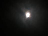 Here are some pictures of the lunar eclipse on 27 October 2004. I was pleasantly surprised at how well they turned out for several reasons. The first is that it's difficult to take good pictures of any astronomical objects with just a camera given the enormous difference between their size and their distance from earth. Also, it was cold and foggy here in Lafayette and condensation on the lens was a problem. While the moon was in the shadow of the earth, it was so dim that you couldn't pick out details with the naked eye, but the camera did fairly well. Also, during the course of these eight-second exposures, motion of the moon relative to earth is actually visible, and this causes a bit of blurring.